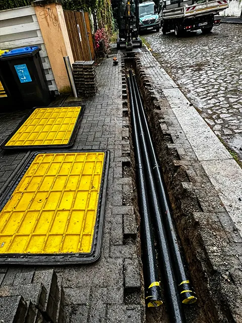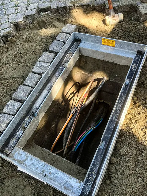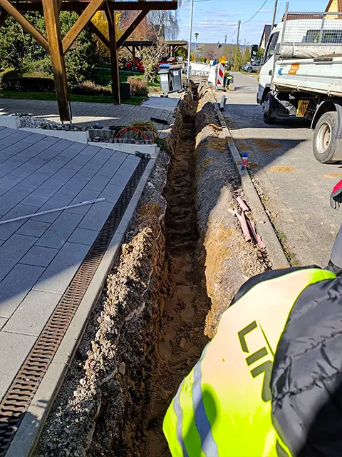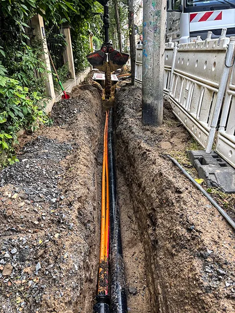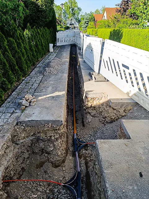 Precyzyjne wykopy liniowe pod kable i rury. Układanie sieci w chodnikach i terenach zielonych.